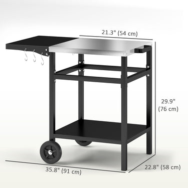 Outsunny Outdoor Grill Dining Cart with Stainless Steel Top and Foldable Side Table, BBQ Movable Pizza Oven Stand Food Prep Table Trolley with Hooks Shelf Cover, Black