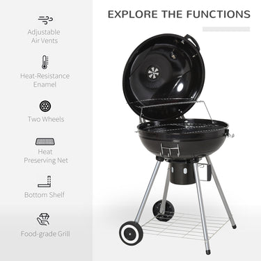 Outsunny Portable Kettle Charcoal Grill for Outdoor Grilling Heat Control BBQ Barbecue