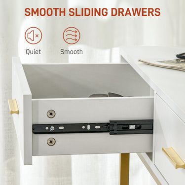 Transform your beauty routine with the HOMCOM Vanity Table Set. Featuring a large mirror illuminated by a white LED light strip with a touch sensor, this makeup desk makes getting ready a breeze. Enjoy plenty of storage with 2 drawers and 5 open compartments, ensuring your makeup table stays tidy. The modern, minimalist style adds a touch of elegance to any room.