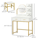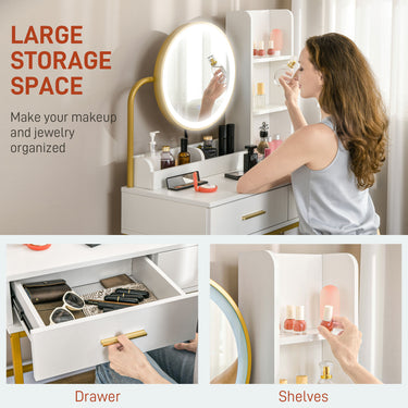 HOMCOM Makeup Vanity Desk Set with Mirror, Stool, LED Lights, Drawers, Shelves, Dressing Table for Bedroom, White