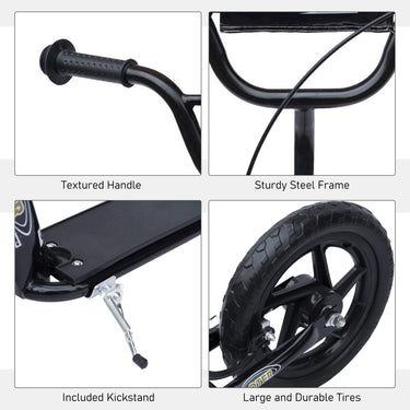 HOMCOM Kids Scooter Street Bike Bicycle for Teens Ride on Toy w/ 12'' Tire for 5-12 Year Old Black