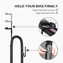 Discover the convenience of parking your bike either vertically or horizontally with the Soozier Bike Rack. Designed to accommodate almost all bikes, from 6" to 28" wheel sizes and 700c bikes, this bicycle stand ensures a snug fit with adjustable hooks. Crafted with a steel frame and rubber-protected feet, it's the versatile solution for bike storage rack needs in your garage. Say goodbye to clutter with this sleek bicycle rack.
