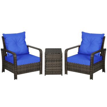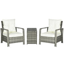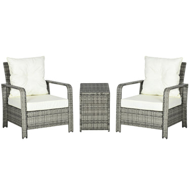 Invite the perfect spot to relax outdoors with friends and family with this three-piece sofa set from Outsunny. This balcony furniture formed of two armchairs and a matching table - each crafted into a sleek, modern design, with the bodies crafted from handwoven PE rattan and supported by a steel frame. Padded seat and back cushions provide comfort, with the matching table with storage providing space for anything you need close. Stylish and comfortable- what’s not to like?