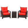 Outsunny 3 Pieces Wicker Patio Furniture Set, Rattan Bistro Set with Storage Coffee Table and Thickened Cushions, Outdoor Conversation Set for Garden, Porch, Balcony, Red
