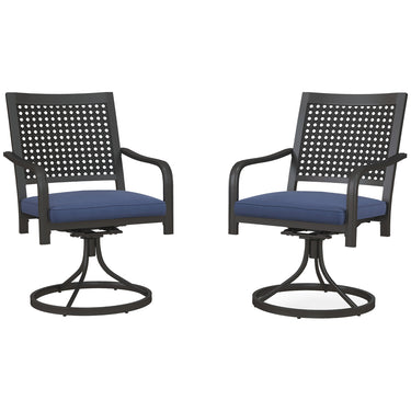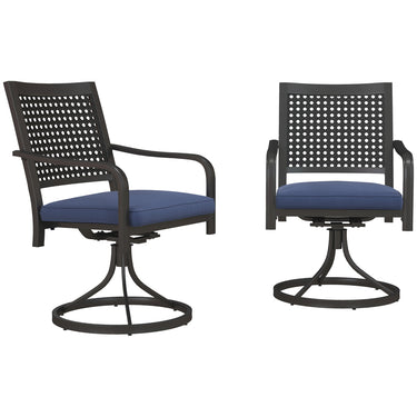 Outsunny 2 Pieces Patio Swivel Chairs with Cushion, Outdoor Swivel Rocker with Curved Armrests, Backrest for Garden, Balcony, Porch, Navy Blue