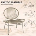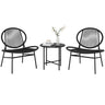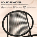 Relax, share a drink and have a chat with Outsunny's outdoor bistro set, including two shell-like chairs and a round steel-top coffee table. The powder coated steel frames offer a strong core to all patio table and chairs, wrapped in protective round plastic wicker - a stylish outdoor patio set for your porch or balcony. 110° sloping backrest and extra wide seat make this patio conversation set a cozy corner for relaxing. Acapulco-like string weaving adds bistro vibes to your outdoor style.