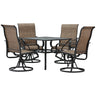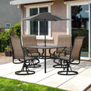 Outsunny 5-Piece Outdoor Patio Dining Set, 4 Swivel Rocker Chairs and 37" x 37" Dining Table Furniture Set with Umbrella Hole for Garden, Lawn and Backyard, Black (Umbrella not included)