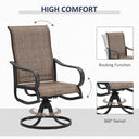 Boring patio? Brighten your backyard with Outsunny's outdoor table and chairs set for 4 and make the outside of your home just as inviting as the inside. Oftentimes, due to uncomfortable seating or simply a lack of furniture, many outdoor environments go underused or ignored completely. Outsunny believes that you can change that with a budget-friendly investment in our designer outdoor furniture sets. Our outdoor swivel chair creates an inviting setting you'll want to use year after year.