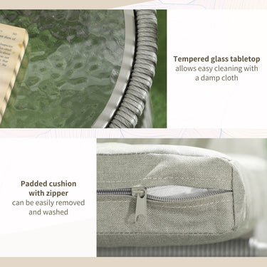 Outsunny 3 Piece Outdoor Patio Bistro Set, Wicker Rattan Furniture with Metal Legs for Garden, Backyard, Light Grey