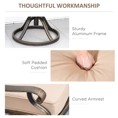 Outsunny 2 Pieces Patio Swivel Chairs with Cushion, Aluminum Frame, 3" Thick Cushions, For Garden, Balcony, Porch, Bronze