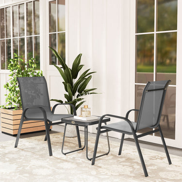 Outsunny Outdoor Bistro Set of 3, 3-Piece Patio Set with Breathable Mesh Fabric, Stackable Chairs and Square Table, Light Grey