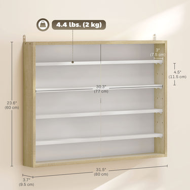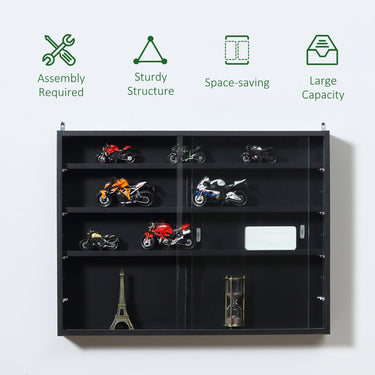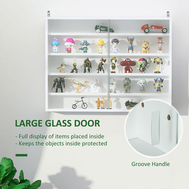 Do you have numerous small items you need help organizing? Do you have valuable souvenirs or collectibles you want to keep safe and on display? Our HOMCOM display case for collectibles is a great solution. Mounted on the wall like a closet, it features four adjustable shelves, allowing you to arrange your items in 5 neat layers. The large glass front door ensures everything is visible and easy to admire.