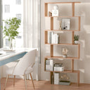 This beautiful modern S-shaped storage shelf will give you plenty of storage space in your hallway, living room, office, bedroom, and more! Made of high quality Particle board, this shelf is resistant to scratches and shock. It has 6 shelves to organize books, DVDs, Photo Frames and all kinds of decorative objects. The clean and contemporary style integrates easily with your existing furniture and will come in handy no matter where it’s placed.