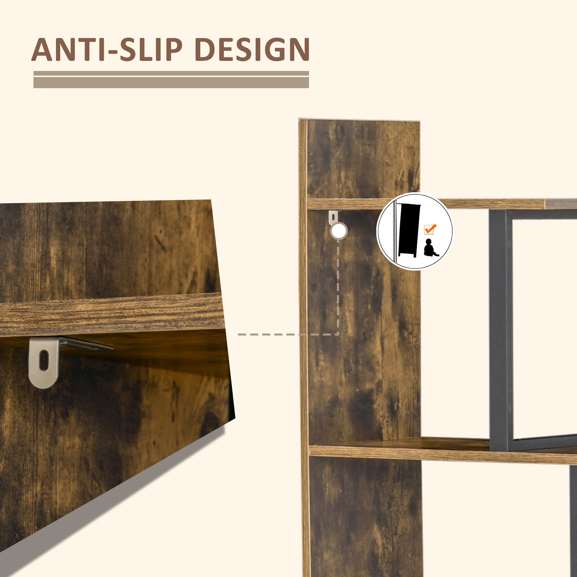 HOMCOM Industrial Bookcase 5-Tier Wooden Ladder Bookshelf Display Stand Organizer for Livingroom Indoor Corner Shelf - Rustic Brown