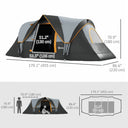 Outsunny 5-6 Person Family Tent, Outdoor Camping Tent with Lighting Hook, Carrying Bag for Camping, Hiking and Travelling, Grey