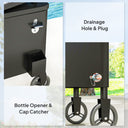 Keep your drinks chilled and your gatherings lively with the Outsunny outdoor cooler cart! With a large volume of 80 qt (76 L), a weather-resistant outer shell, and an inner box for insulation, this standing cooler keeps your beverages cool for longer periods. Featuring wheels, a built-in bottle opener with cap catcher, and a drain hole with plug, it's both stylish and practical. Suitable for barbecues, parties, and any outdoor events—elevate your hosting game today!
