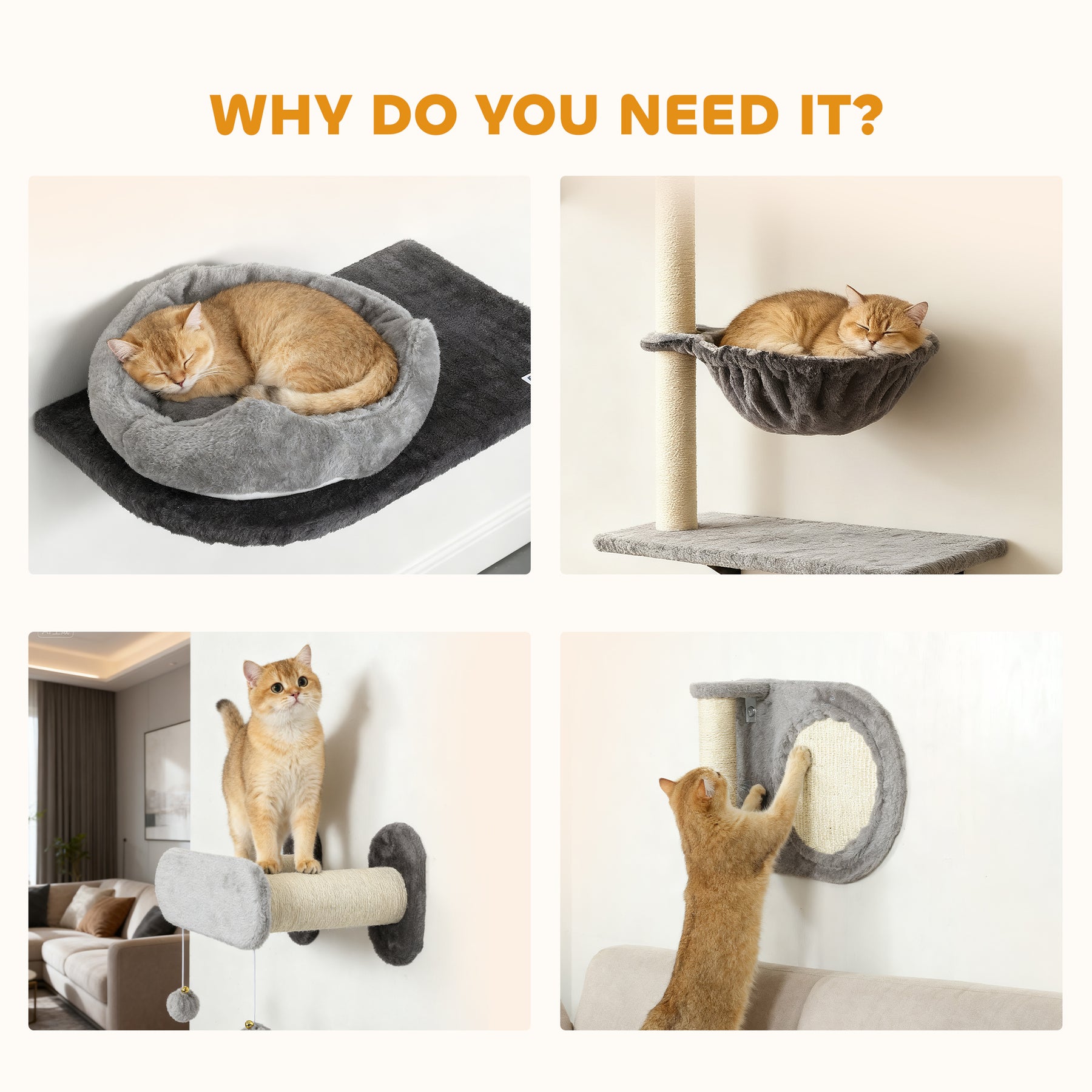 - • Wall-mounted design saves floor space, creating a high playground for your cat