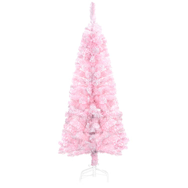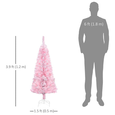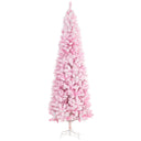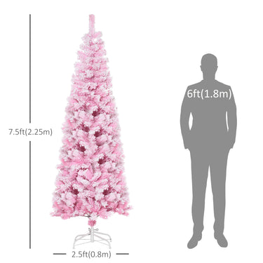 HOMCOM 7.5 FT Snow Flocked Artificial Christmas Tree, Pencil Xmas Tree with Realistic Branches, Auto Open and Steel Base, Pink