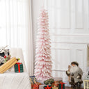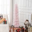 HOMCOM 5ft Snow-Flocked Artificial Christmas Tree, Slim Pencil Xmas Tree with 301 Realistic Branches, Metal Base, Pink