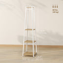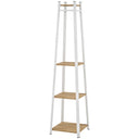 Transform clutter into chic organization with the HOMCOM coat rack with shelf. Featuring 8 double hooks for all your hangables and a three-tier shelf for decorative flair, this clothing rack fits snugly into any nook. Its trapezoidal, space-saving design makes it a stylish addition to your hallway or living room, ensuring everything stays neat and accessible.