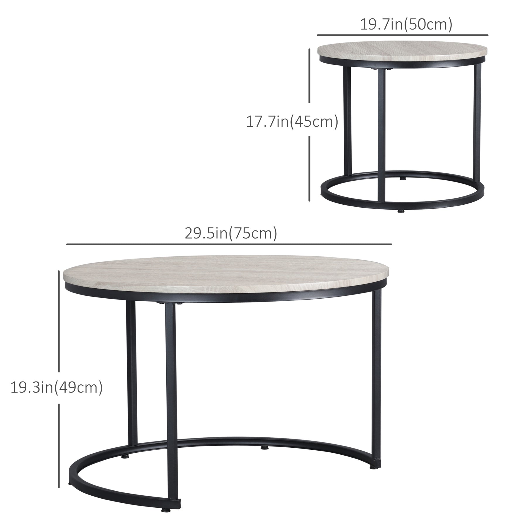 - • Overall Dimensions: 29.5"⌀ x 19.3" H (75⌀ x 49 cm) (large table), 19.7"⌀ x 17.7" H (50⌀ x 45 cm) (small table)