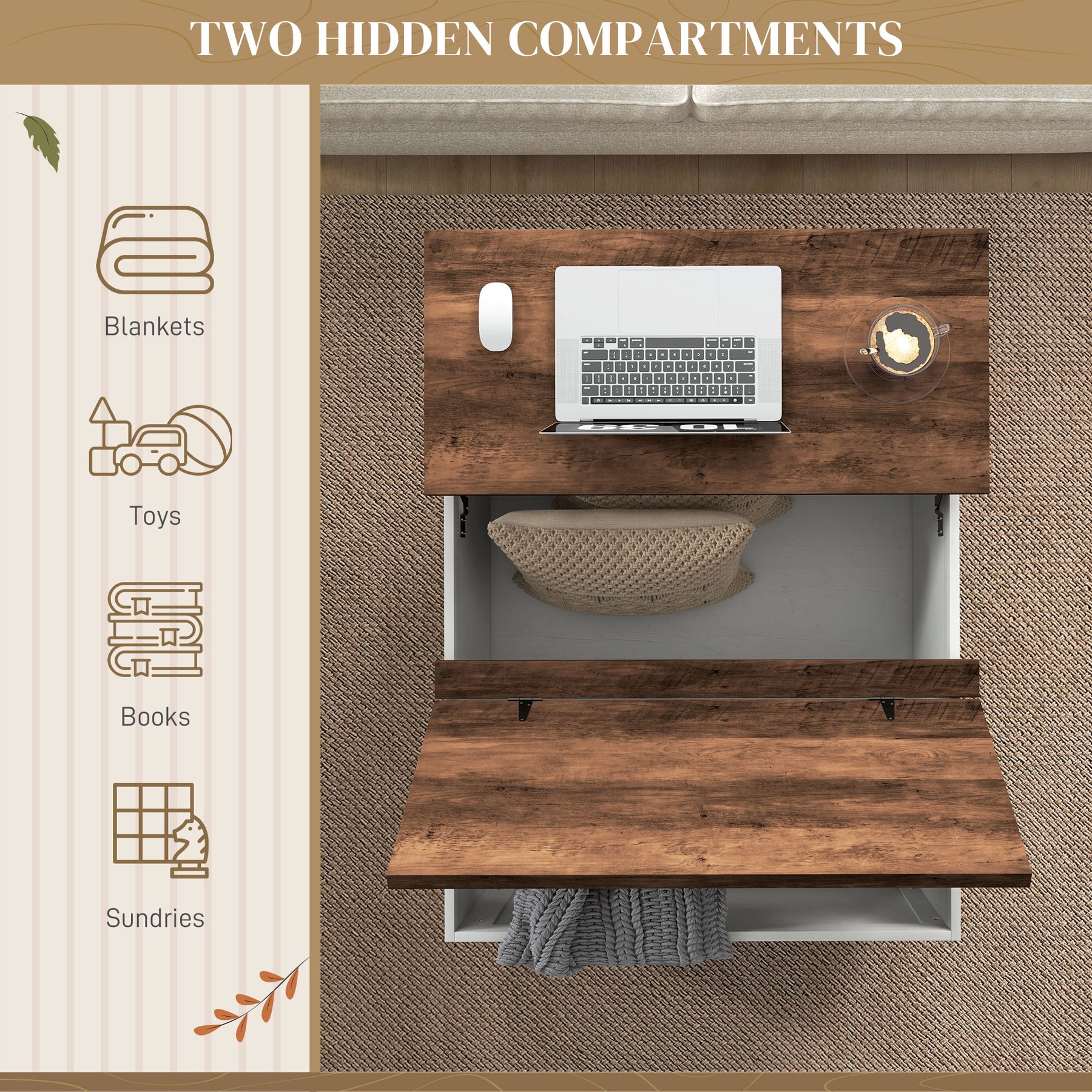 Enhance your living room with the charming farmhouse style of HOMCOM's coffee tables. Our tea table boasts a hinged top and lift top design, complete with a spacious hidden compartment for effortless storage of books, magazines, and other items. Crafted with a quality particleboard frame and solid pinewood legs, this stable lift top coffee table exudes both style and functionality. Great size for placement in front of a sofa or home office.