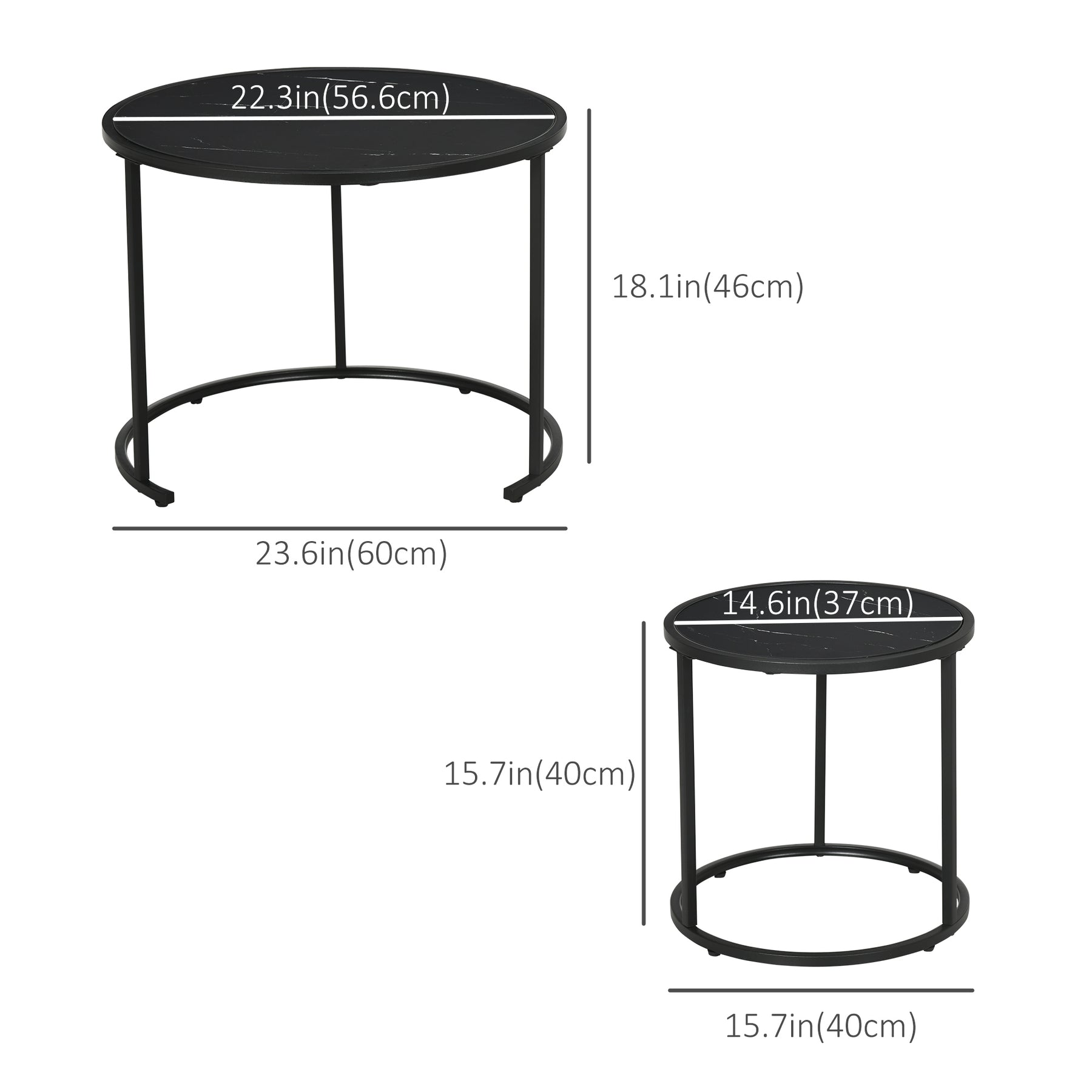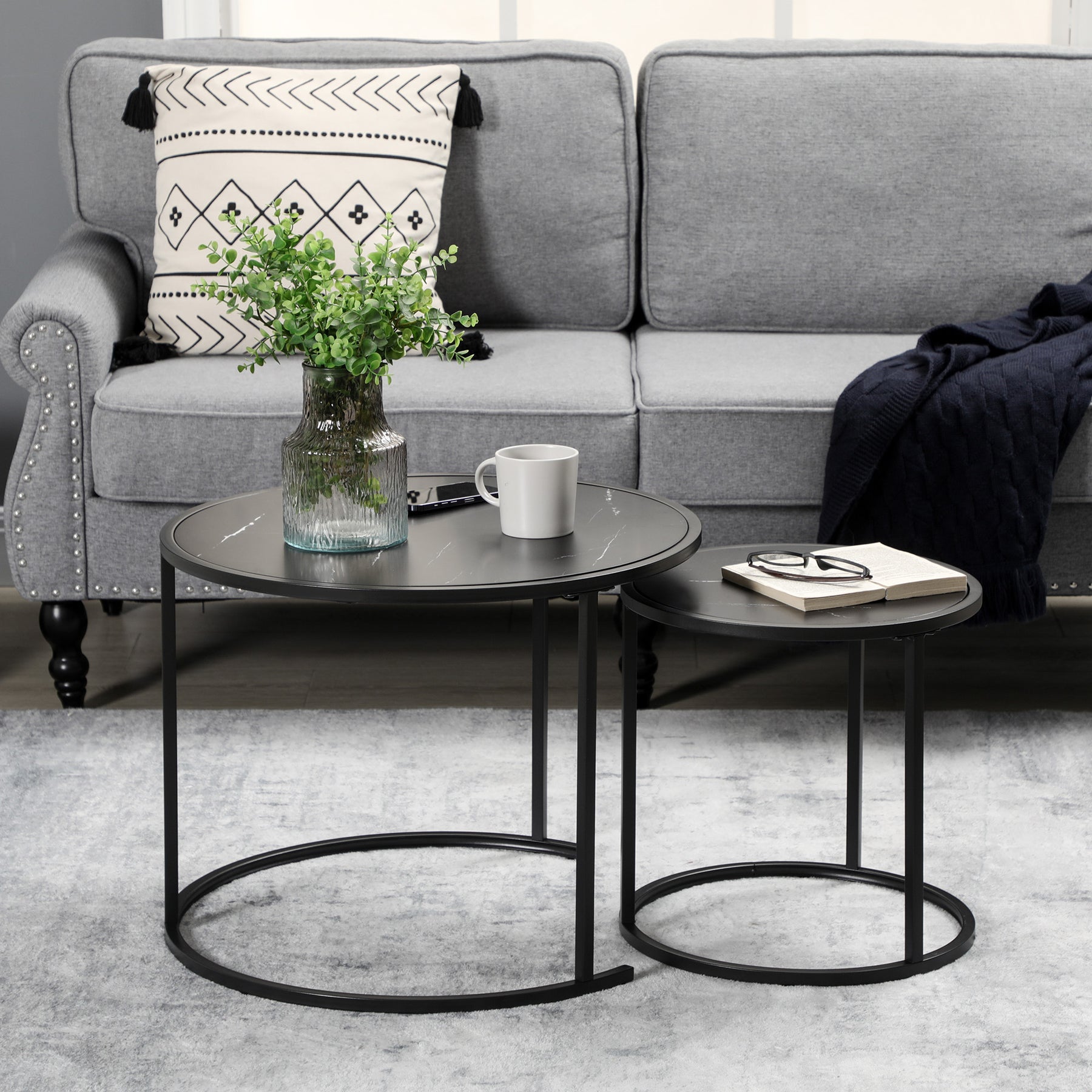 Whether you pull them apart or push them together, these HOMCOM coffee and end table set will make a great first impression in your home. The nesting tables for living room comprise a larger and a smaller table that perfectly overlaps each other, making it ideal for compact storage if necessary. To ensure a sturdy structure, each table base is made of steel. The tops of nesting coffee tables are covered in a beautiful marble effect that will retain its style and beauty for many years.