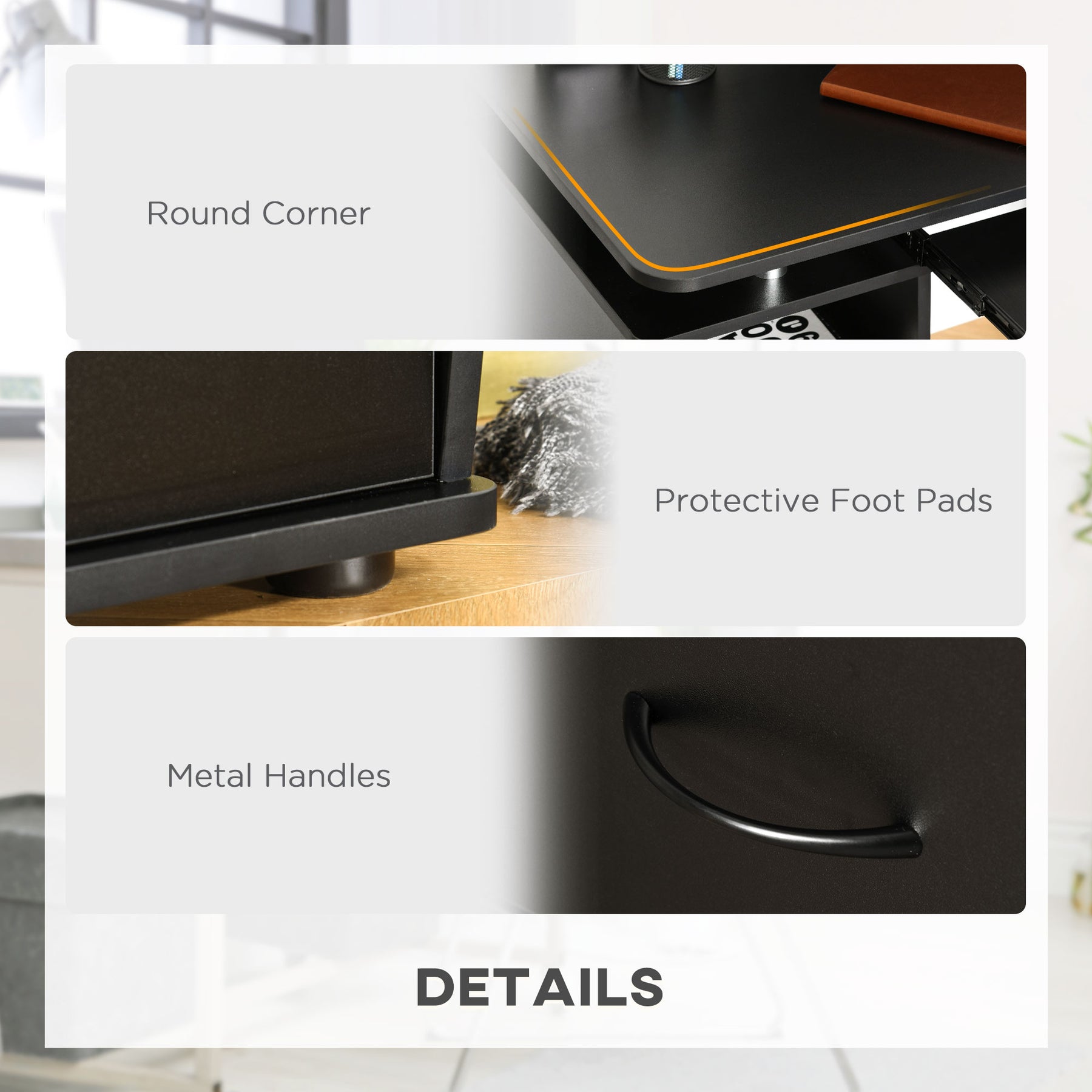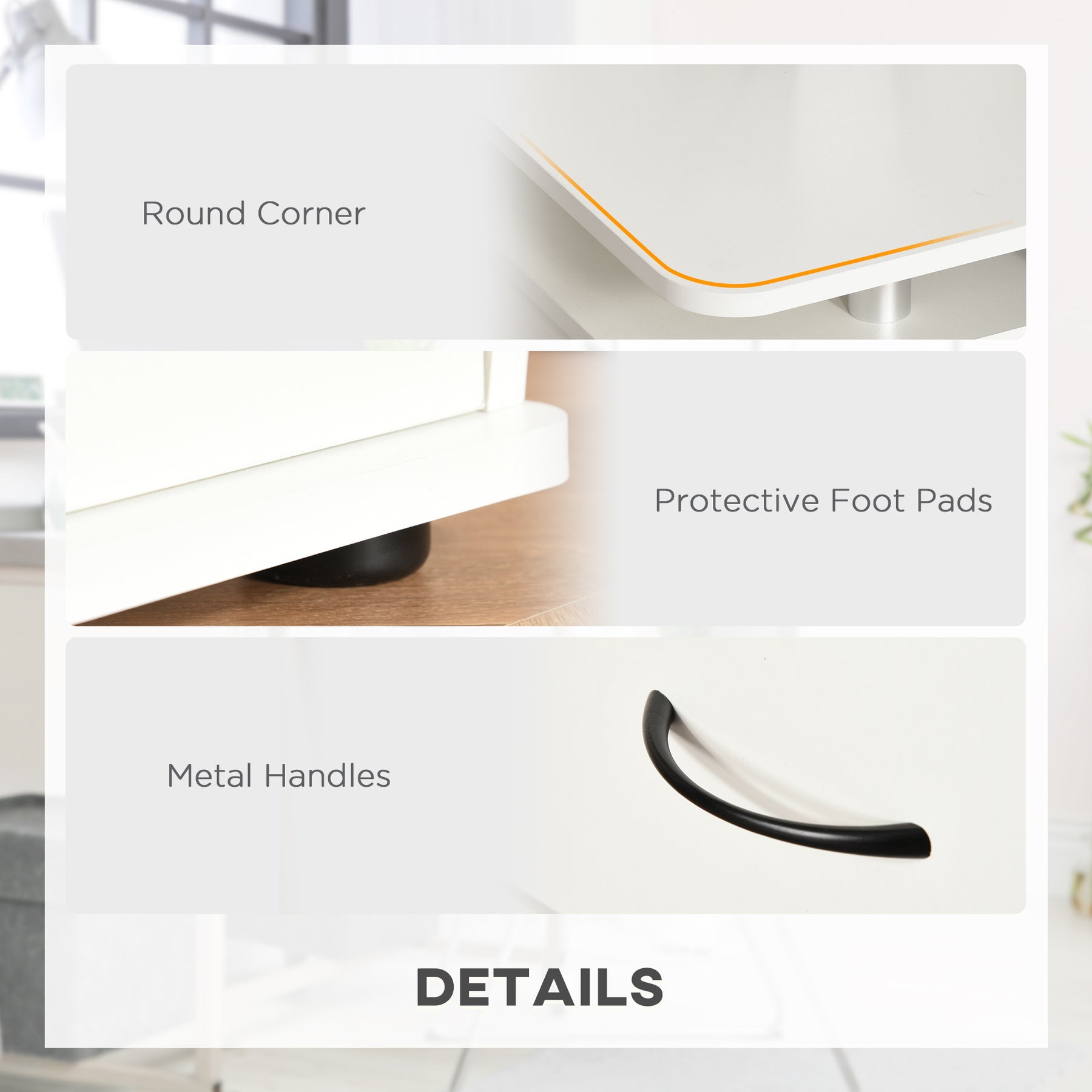 Introducing HOMCOM's multi-functional computer desk with storage, an ideal workstation suitable for both professional and personal purposes. This study desk offers convenient storage options, including an elevated rack for or printer, a slide-out scanner shelf, a keyboard tray, and two spacious drawers. Its sleek appearance and efficient design make it an excellent addition to any home office, dorm room, or workspace, providing ample space to organize and enhance productivity.