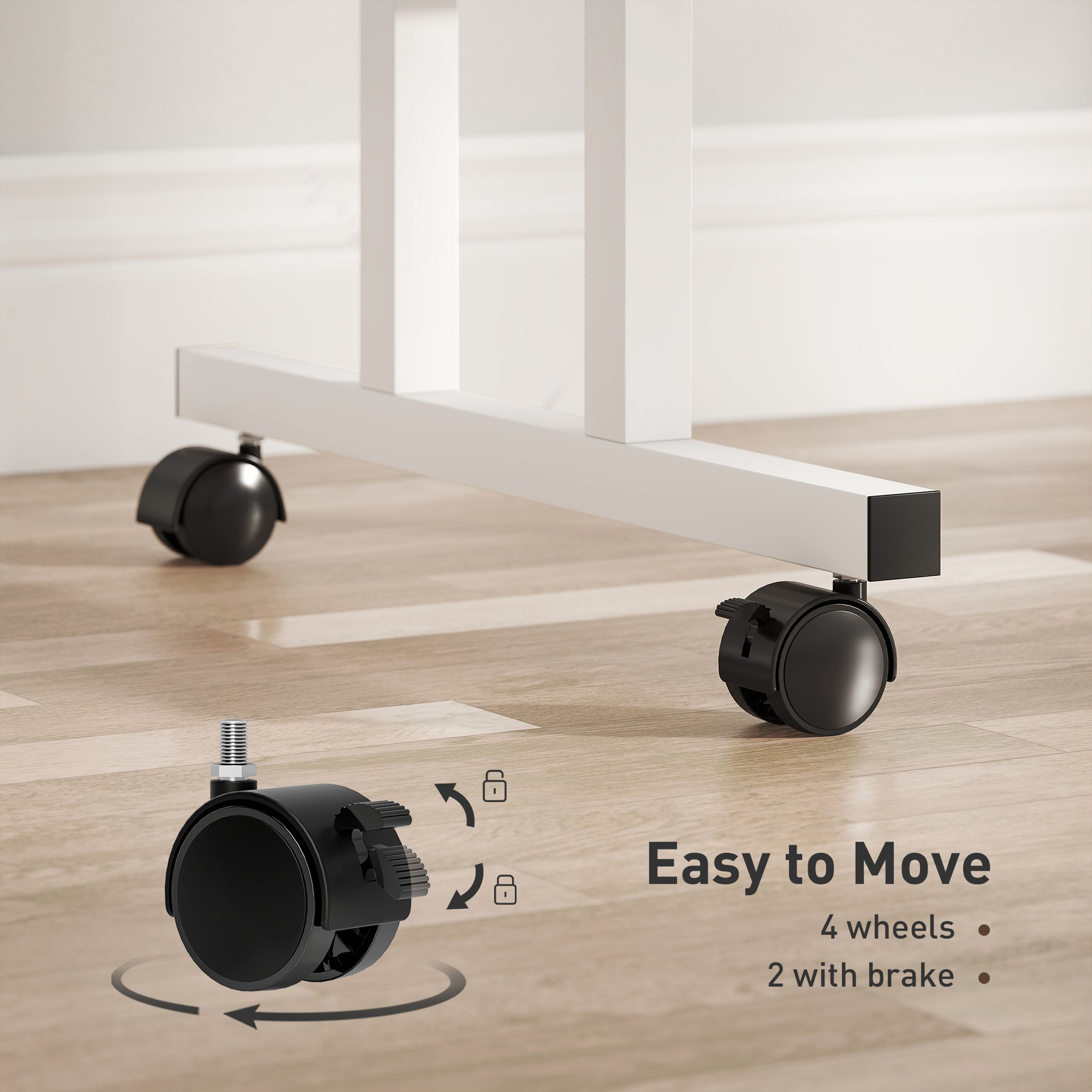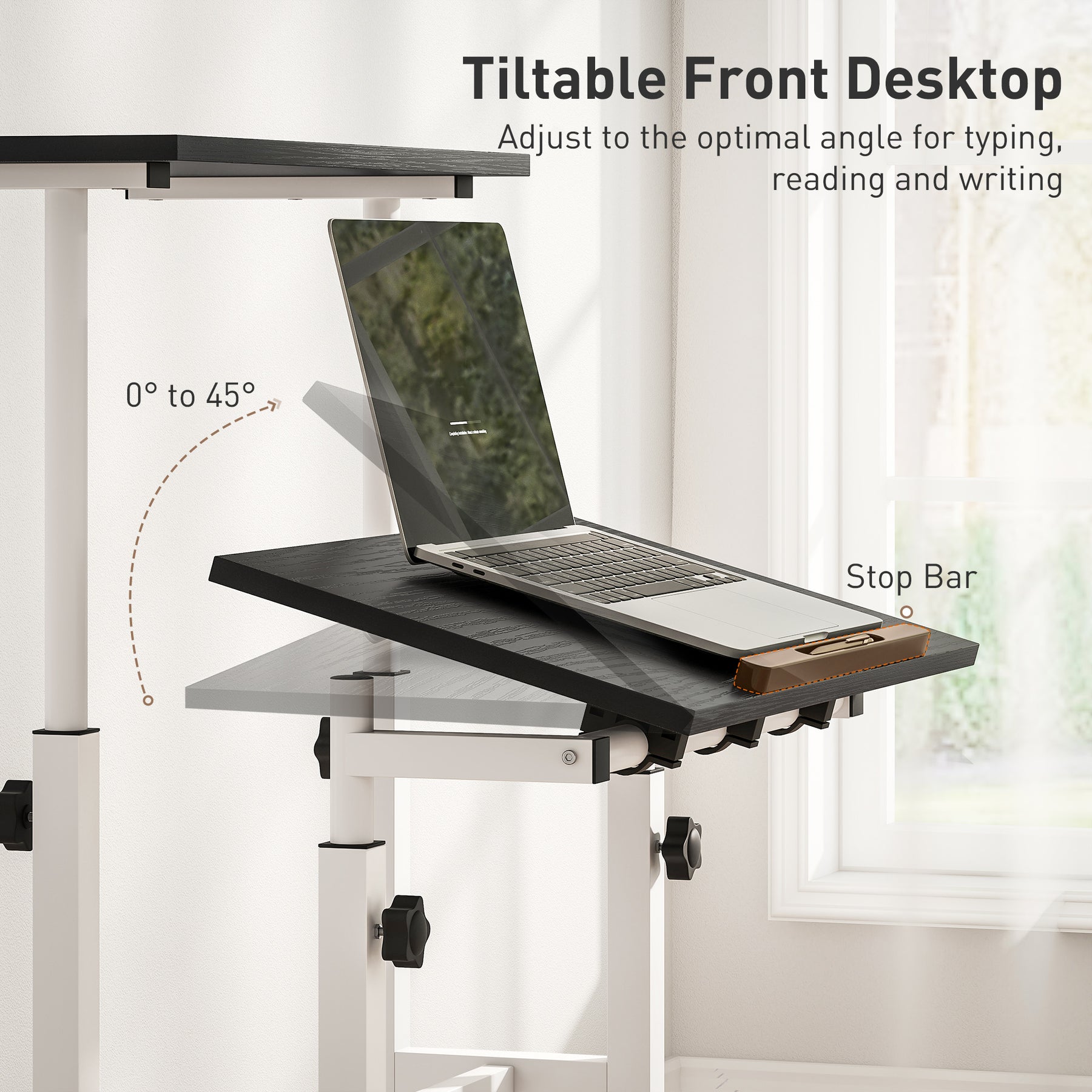 Feeling trapped by a static desk, with back pain and scattered focus? Your workspace should adapt to you, not the other way around. The HOMCOM stand up desk transforms your day. Effortlessly switch from sitting to standing, and glide your mobile home office desk to any room. Its dual-level surface keeps your monitors and creative tools organized, turning any corner into a hub of productivity and comfort.