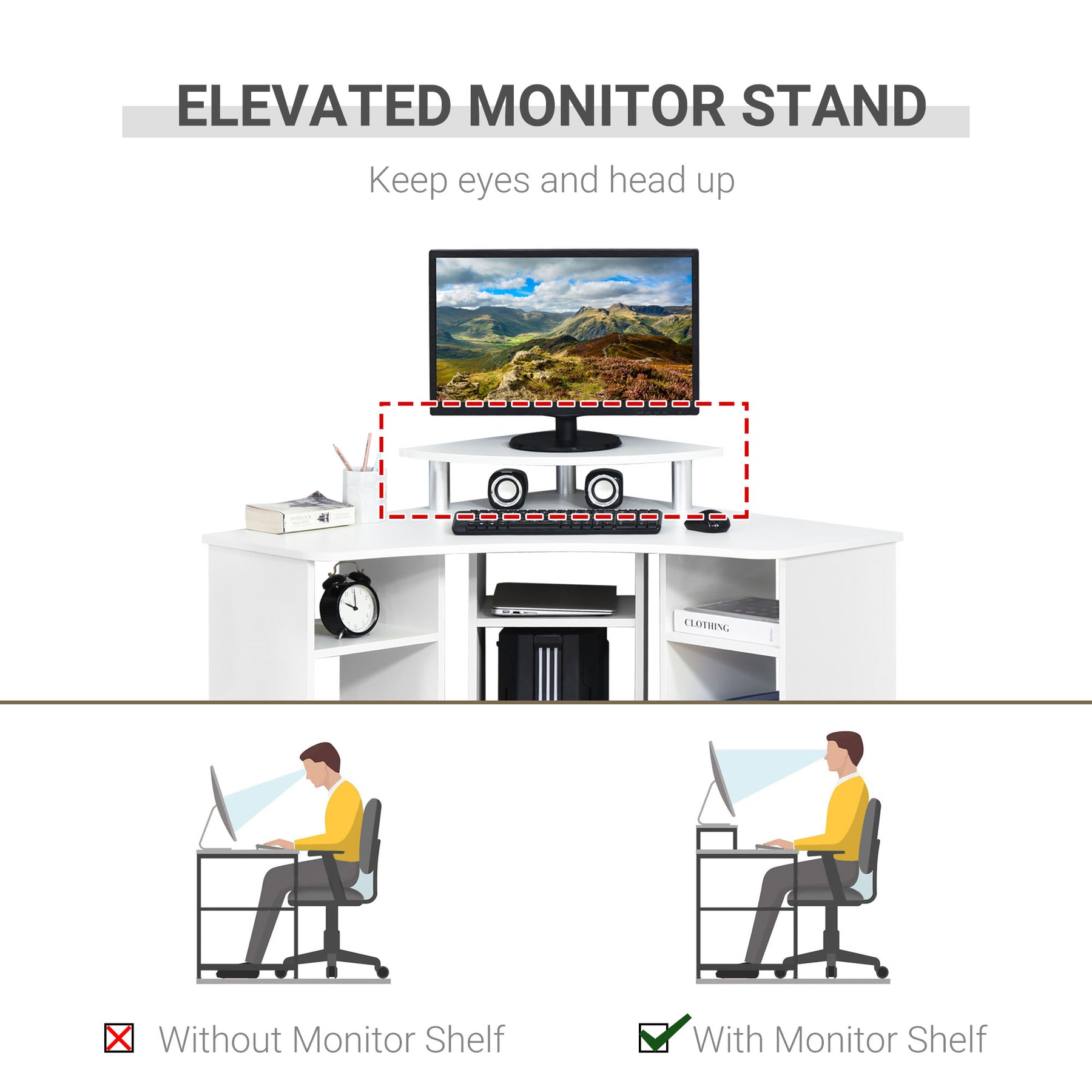 Do you ever feel as if there isn't enough space? The HOMCOM L-shaped corner desk has been specifically designed to maximise space utilisation. It makes full use of corner space, which is overlooked in daily life. When combined with an elevated monitor stand, three host positions, and three hutch shelves, the computer desk can meet all of your storage needs while working or studying. With this unique computer desk, you can create a stylish workstation, storage unit, and display case.