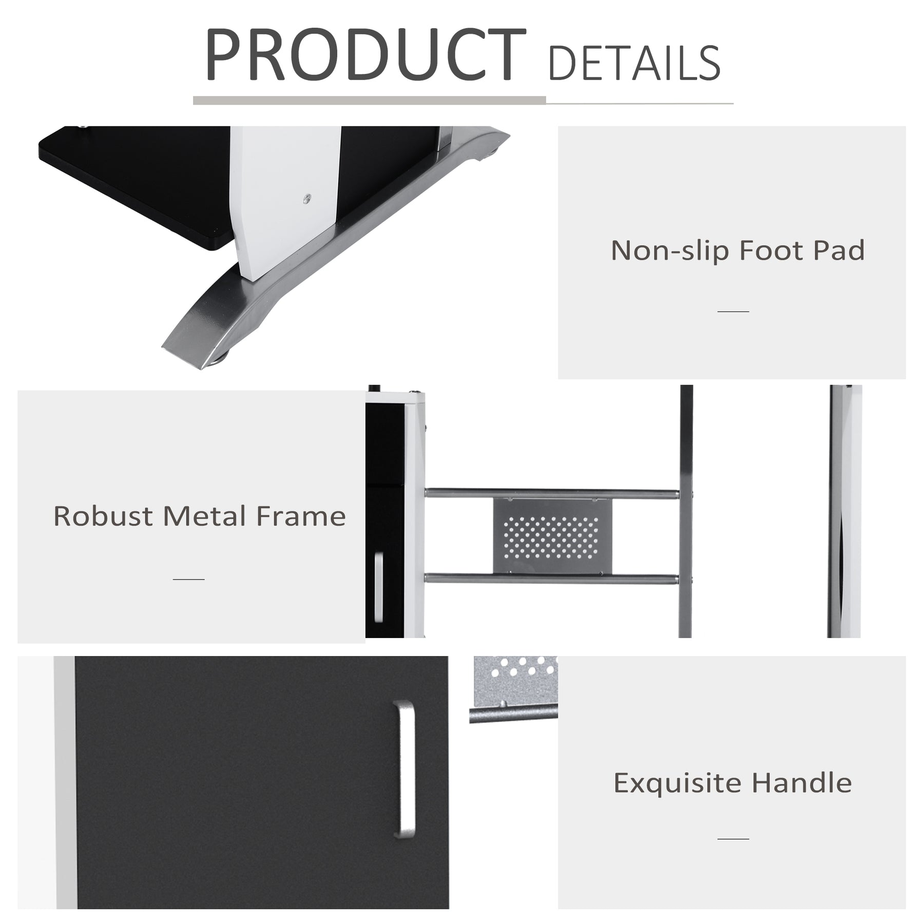 Transform your home office into a modern and professional workspace with the HOMCOM work desk. This stylish desk offers ample room for your computer and accessories, featuring a sliding keyboard tray and a spacious surface for your monitor and daily essentials. A small drawer and cabinet provide convenient storage for personal items. With anti-slip feet ensuring stability and security, this desk is the perfect solution for those seeking a sleek and efficient home office environment.