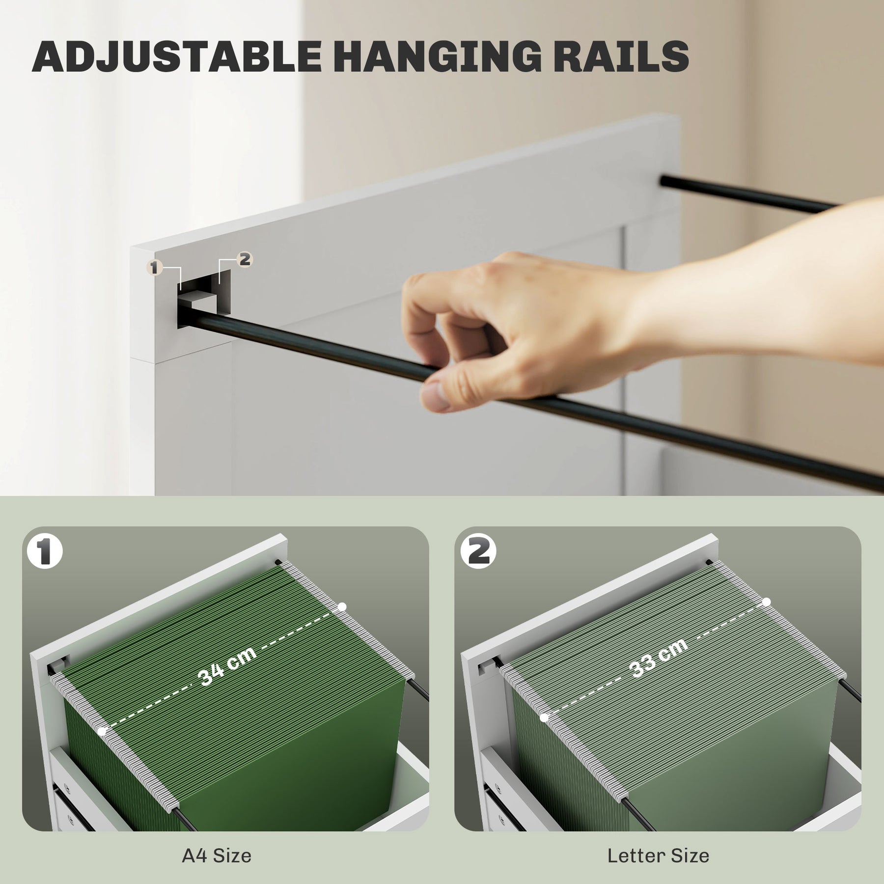 - • Lower drawer featuring adjustable hanging rails to fit A4 or letter-sized folders