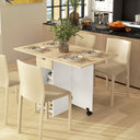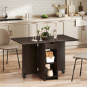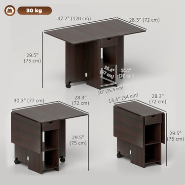 Dining tables are hot spots even when there's no food on them. Playing games or helping with homework is where you share good times with family and friends. This drop leaf table is constructed of particleboard frame, with two side leaves, great for a smaller kitchen or as an accent in a larger room. The folding dining table seats up to four people for a weekend brunch with friends. Make your house a home with HOMCOM.
