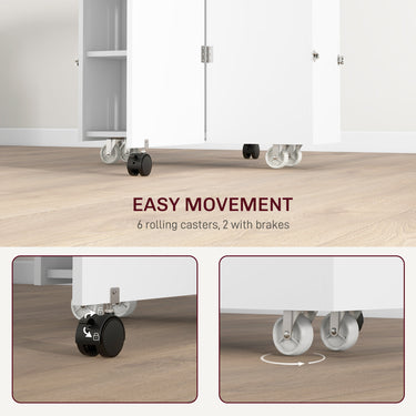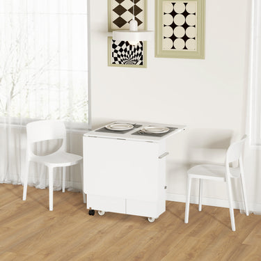 HOMCOM Folding Dining Table with Storage, Drop Leaf Kitchen Table on Wheels with Box, Shelves and Towel Racks, White