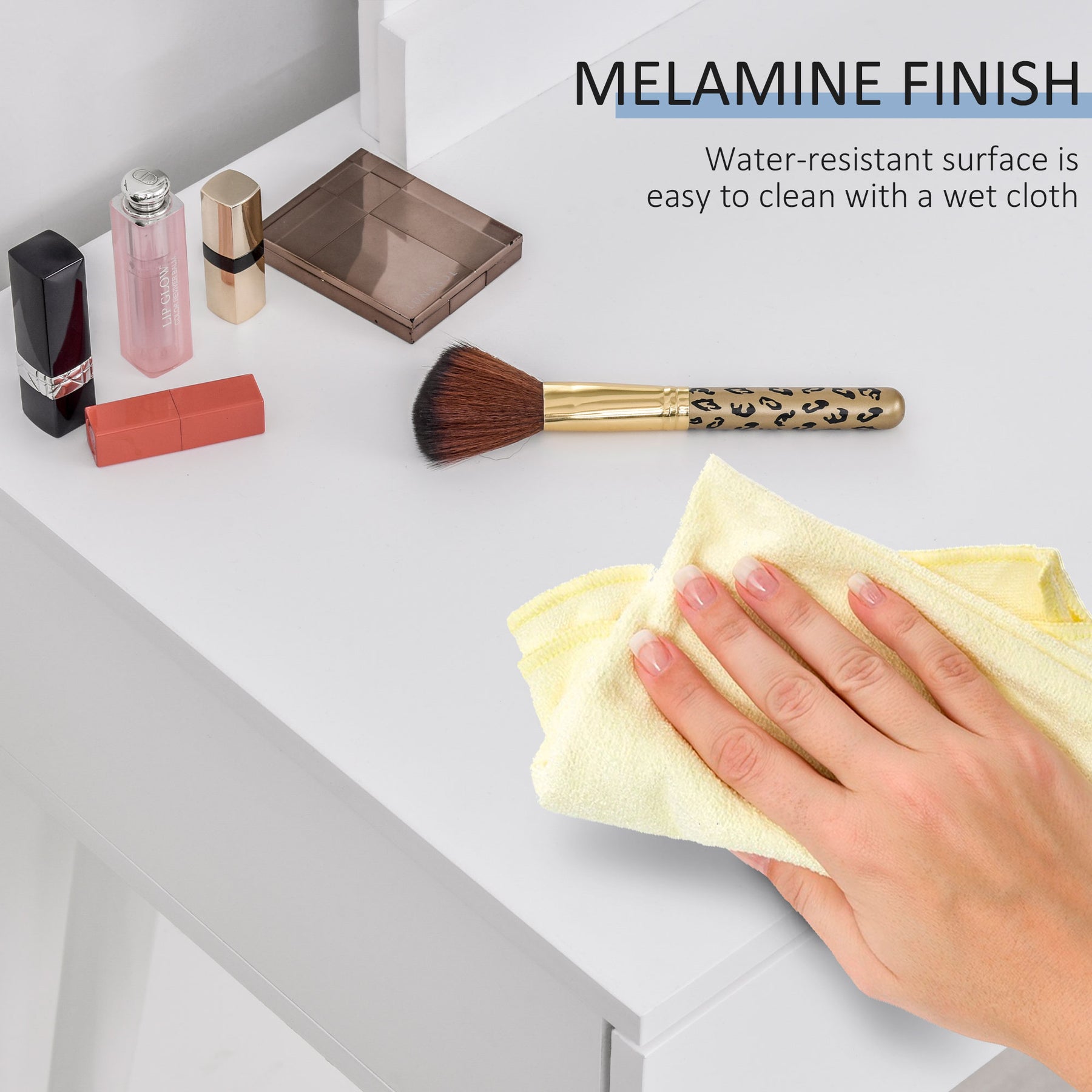 - • 2 drawers offer ample storage space and prevent your cosmetics from getting dusty