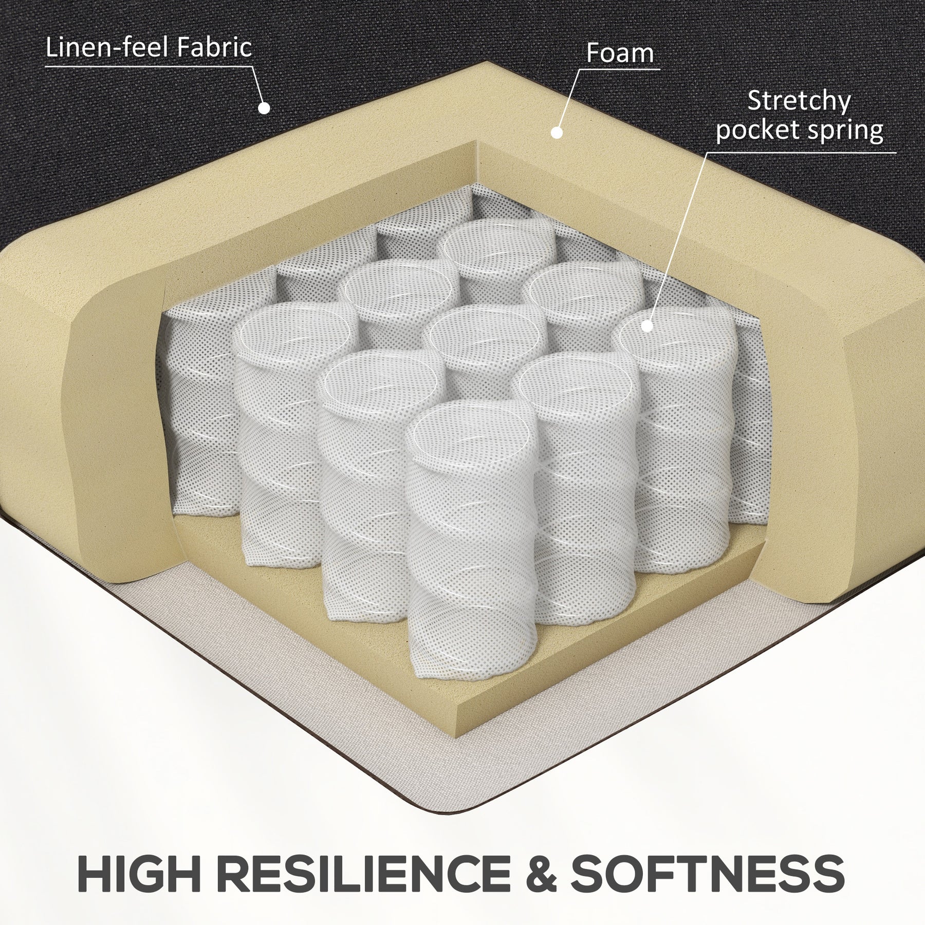 - • Linen-feel fabric with comfortable upholstery foam inside
