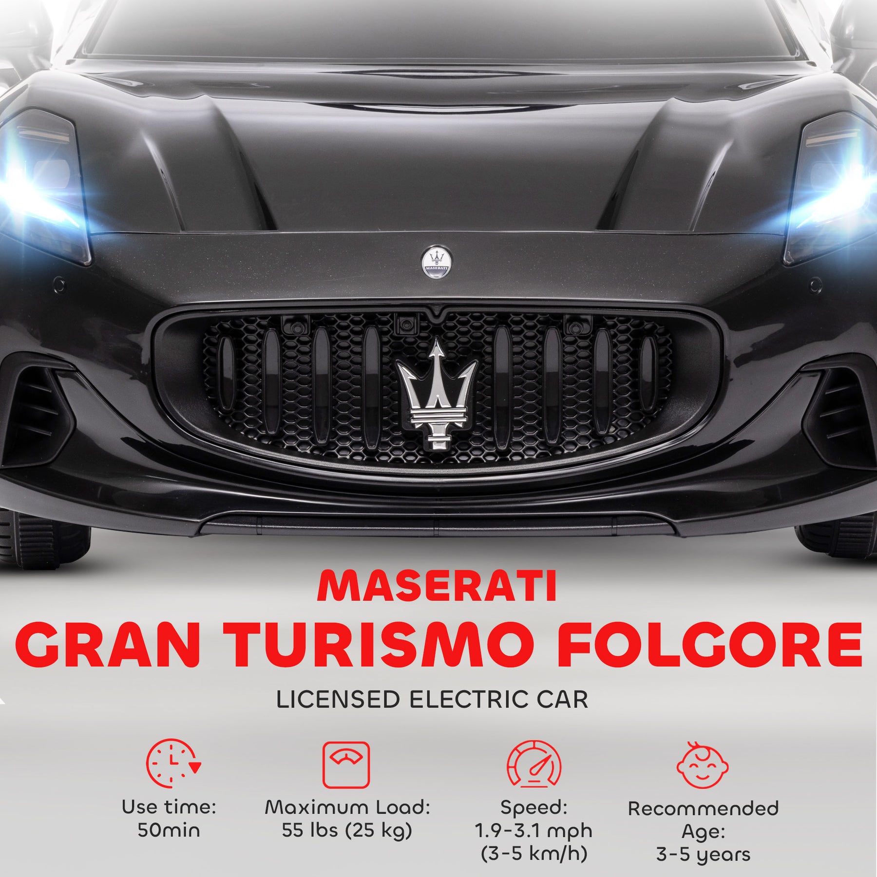 Rev up the fun with the Qaba Maserati Gran Turismo Folgore! This licensed kids electric car features powerful dual 12 motors and a UL standard power device for up to 50 minutes of playtime. Choose from parent remote control or manual drive by the kids, ensuring safety with a smooth start and safety belt. Suitable for adventurers aged 3-5 years, it's a fantastic ride on car with remote control!