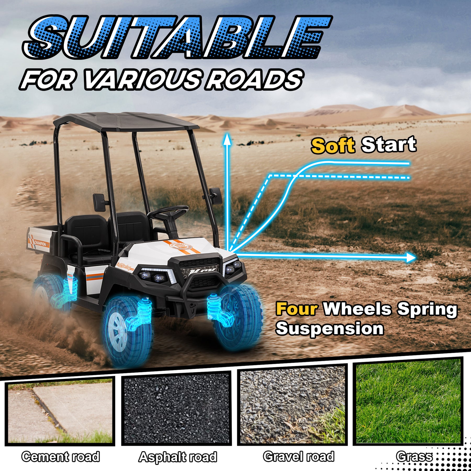 - • Sunshade, rear storage, music, horn and lights bring realistic fun
