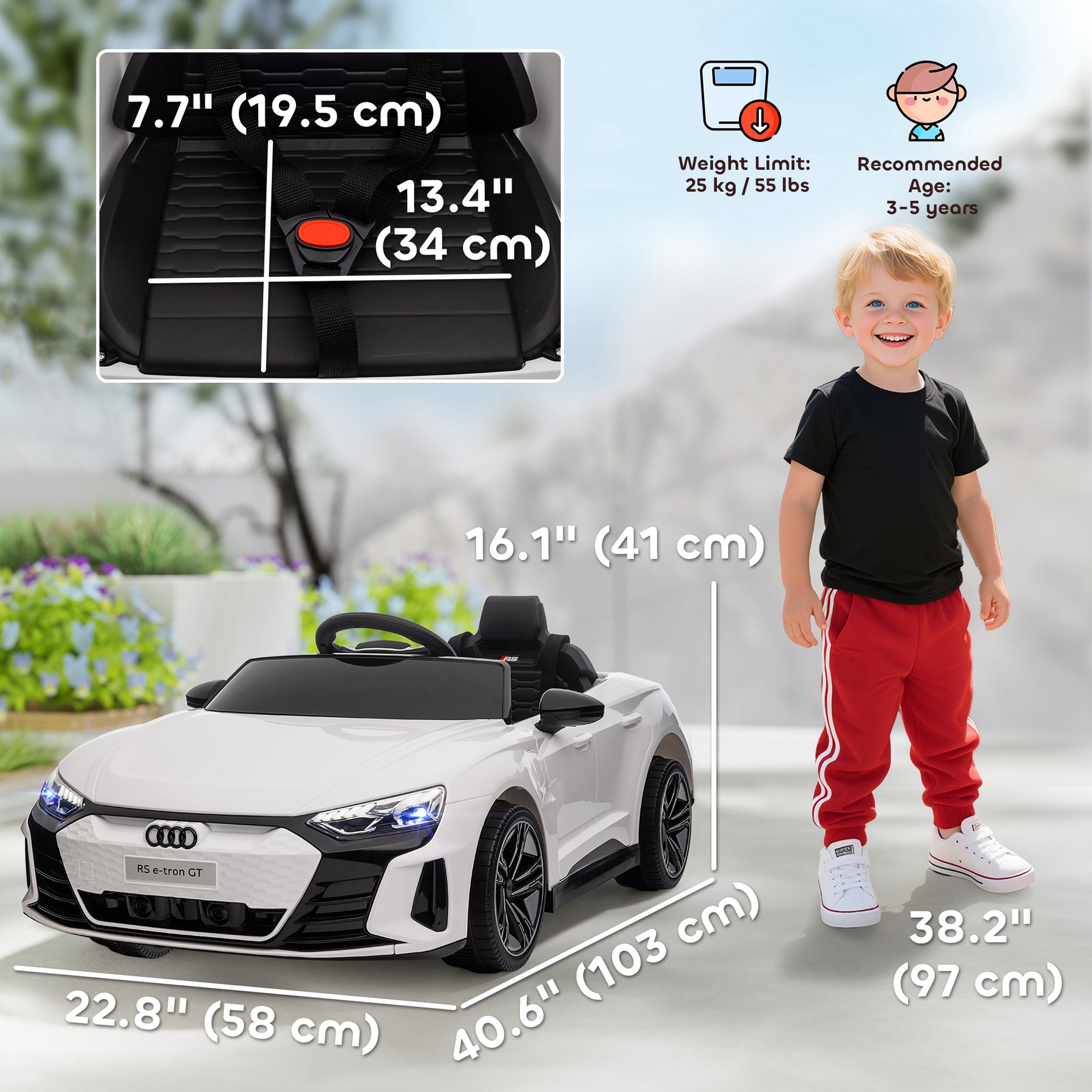 Rev up the fun with the Aosom 12V Audi RS e-tron GT, a sleek electric car for kids! Featuring four wheels, a shock-absorbing suspension system, seatbelt-equipped riding, and headlights to illuminate any potential hazards. Additionally, a horn is available for your child's enjoyment and to alert others when necessary. Trust in our vehicle to provide a smooth and secure ride, even on rough terrain. Safety is our top priority, so let us give you peace of mind while your child has fun.