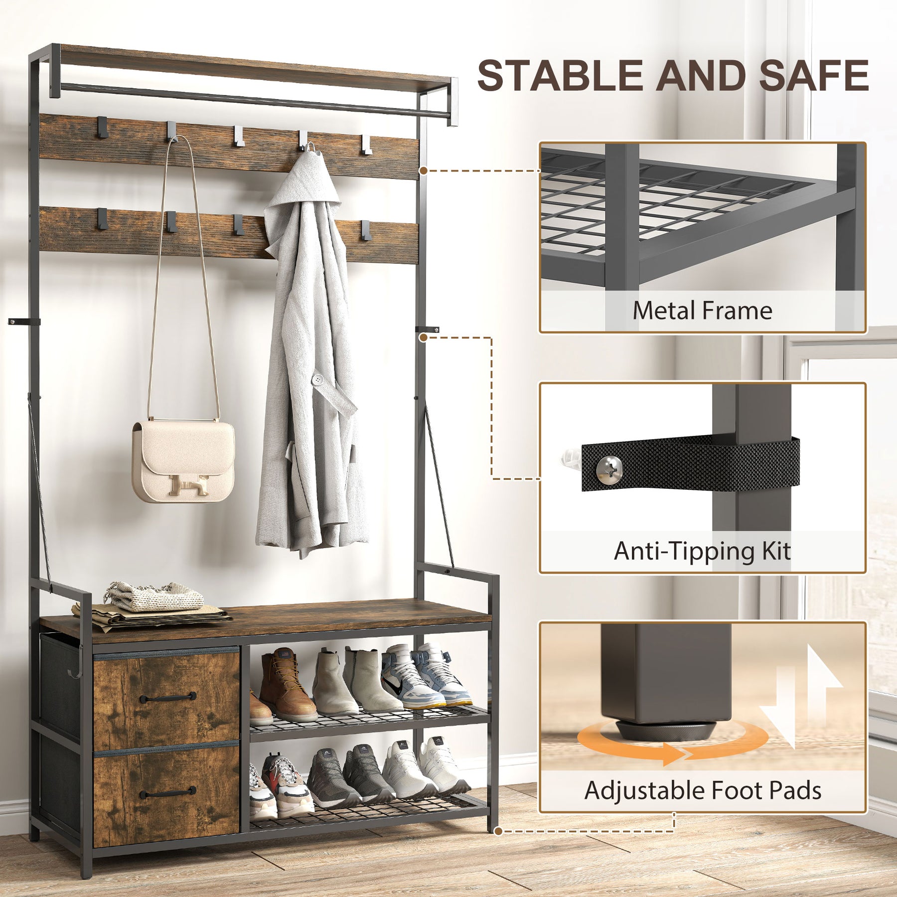Stepping into a cluttered entryway can be frustrating. This HOMCOM hall tree instantly transforms your space, offering a clutter-free solution. The multi-functional design combines a comfortable shoe bench with a spacious shoe rack, neatly holding up to six pairs of shoes. Plus, the HOMCOM coat rack shoe bench features ten adjustable hooks, allowing personalized storage for coats and bags, ensuring a welcoming, organized home.
