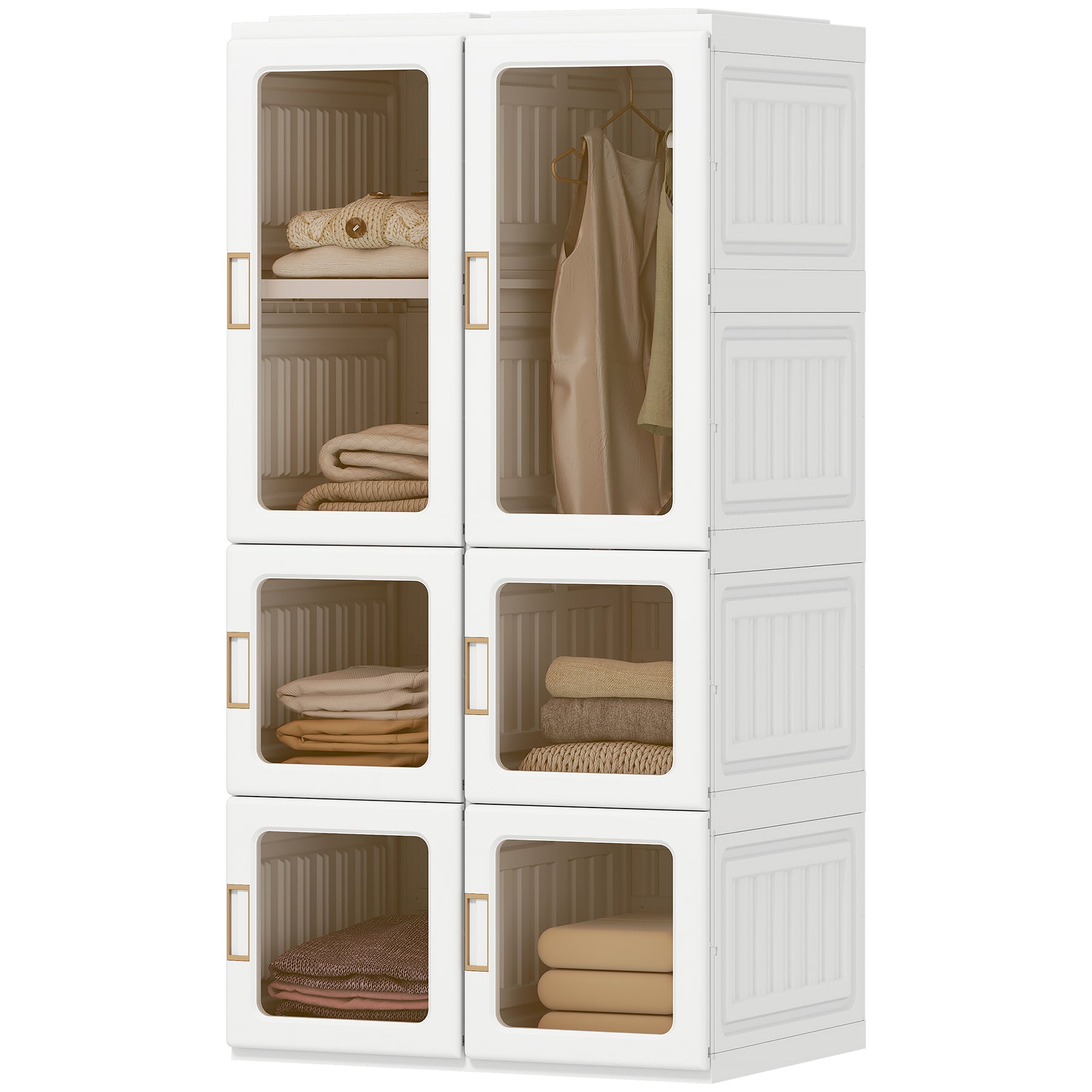 For those constantly on the move or renting, the HOMCOM wardrobe closet with doors offers a swift solution to clutter. Imagine setting up a serene space in just three minutes, where five compartments and a foldable hanging rod make organizing a breeze for everyone. Crafted from quality PP and ABS, this portable closet securely holds even the heaviest winter coats, ensuring your family's peace of mind throughout the seasons.