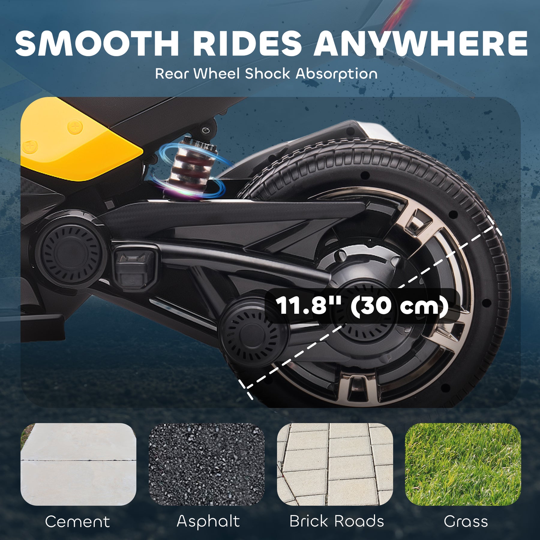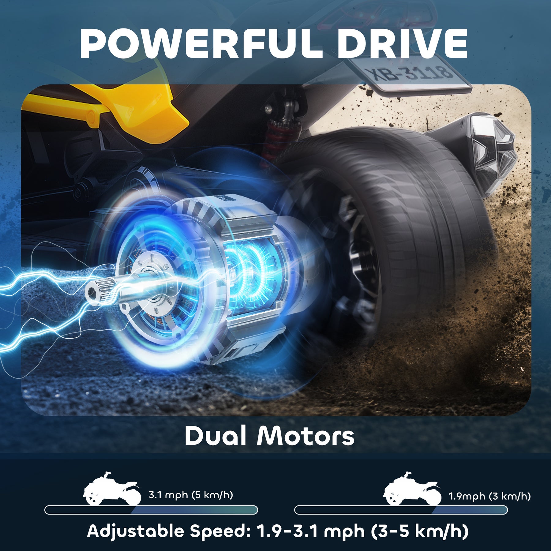 Adventure awaits with the Qaba kids ATV. Designed for safety, its slow start and dual speed settings meets beginner-friendly rides, easing parents' worries. Dual 12V motors and an independent suspension system conquer diverse terrains, offering young explorers a thrilling experience. The striking reverse tricycle design makes every playdate unforgettable.