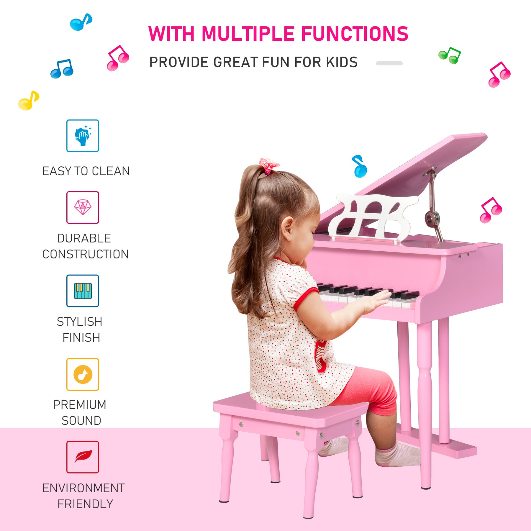 Are you looking for the ideal gift for your child? Check out the HOMCOM toy piano! With its sleek design and 30 high-quality keys, your child will love playing beautiful melodies. Its compact size also makes it suitable for any room in your home, allowing your child to discover the joy of music at an early age. Give your child the gift of music with this fantastic design.