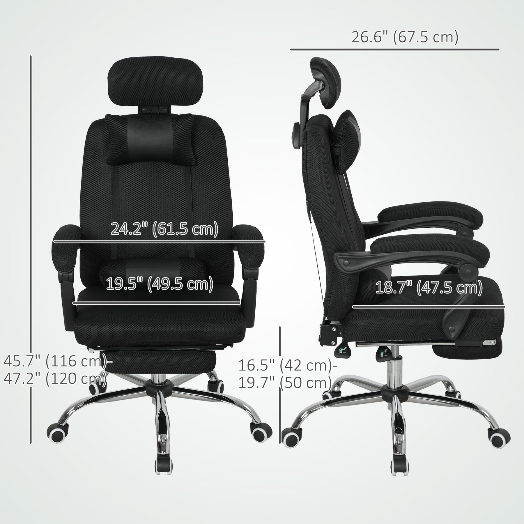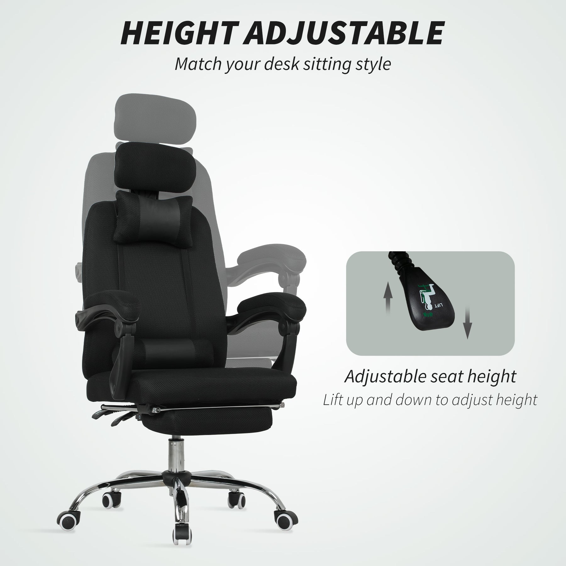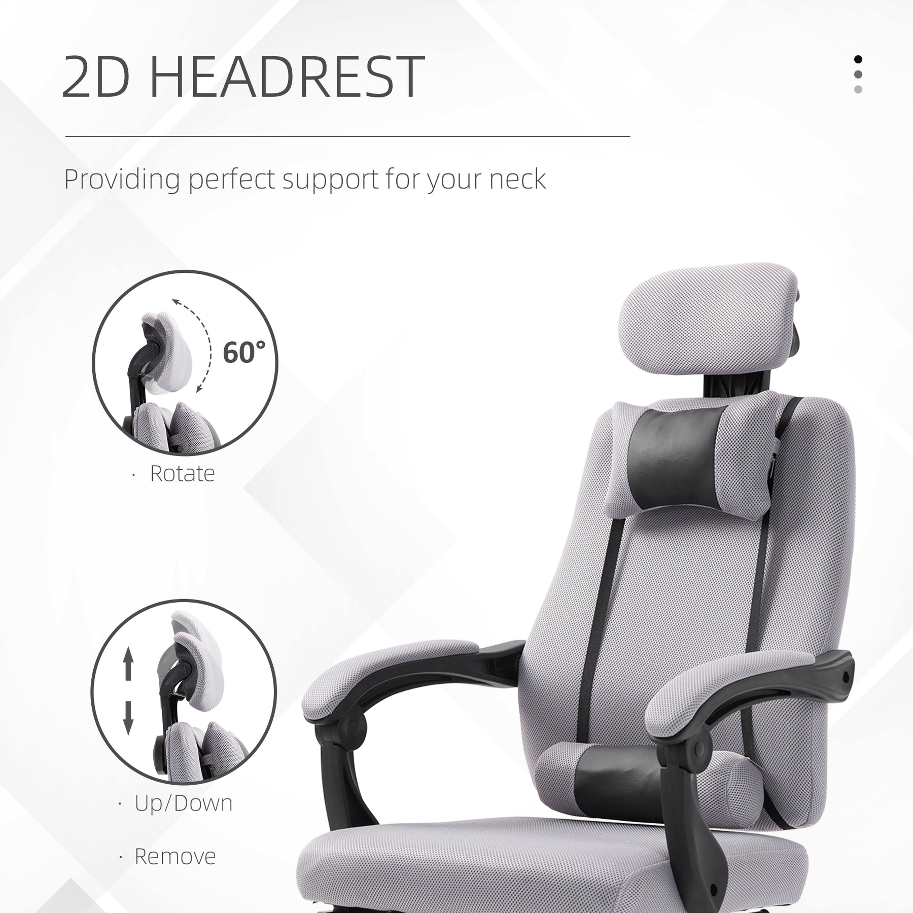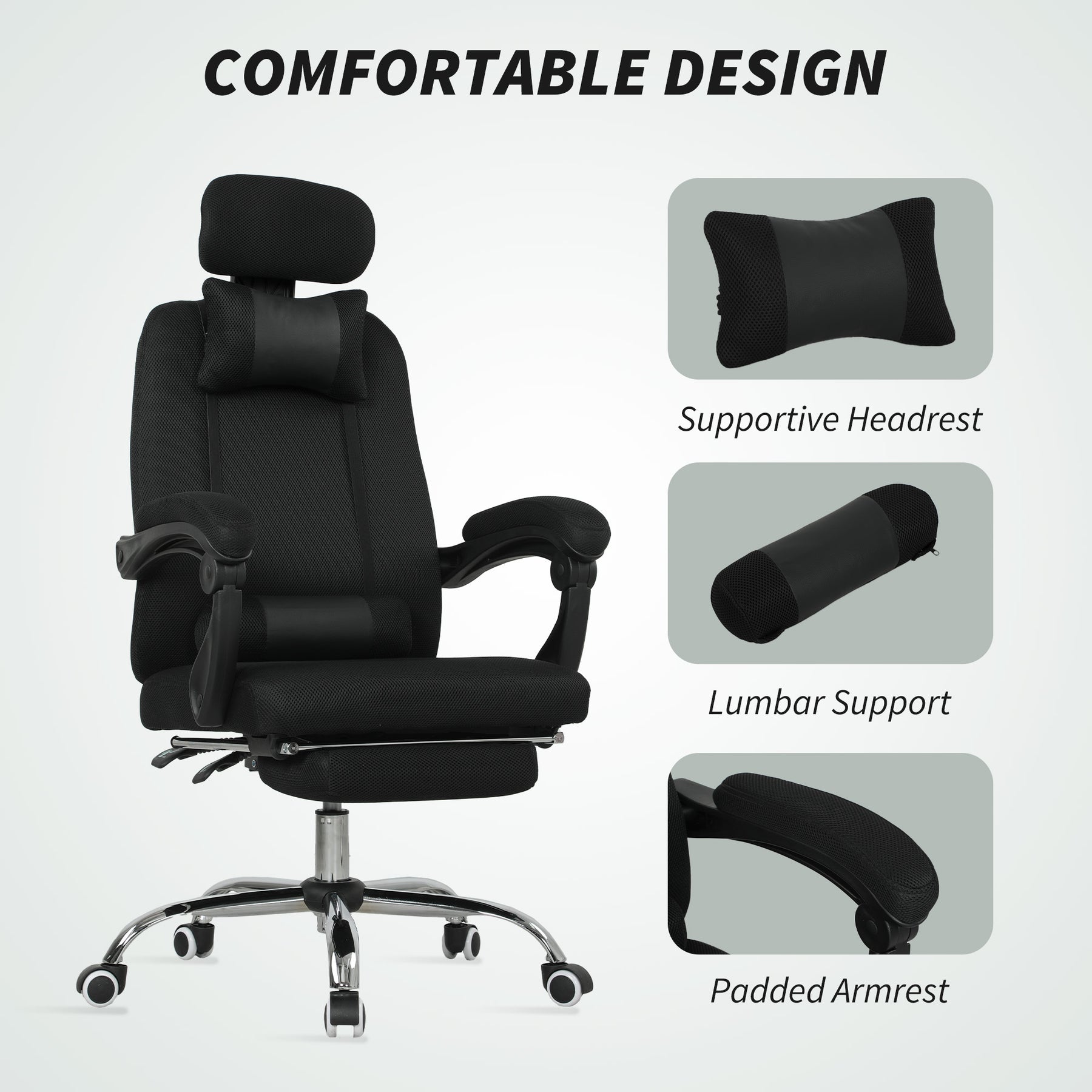 Comfortable and multifunctional office chairs are truly indispensable. Ergonomic high air permeability fabric cover, curved and adjustable backrest, and extended footrest enable you to enjoy a comfortable experience for a long period of time. The swivel chair's head and lumbar pillows are made of fabric, offering the breathable mesh chair a sleek and stylish look. Robust 5-star PU casters allow you to move smoothly. Let this swivel chair improve your quality of life.