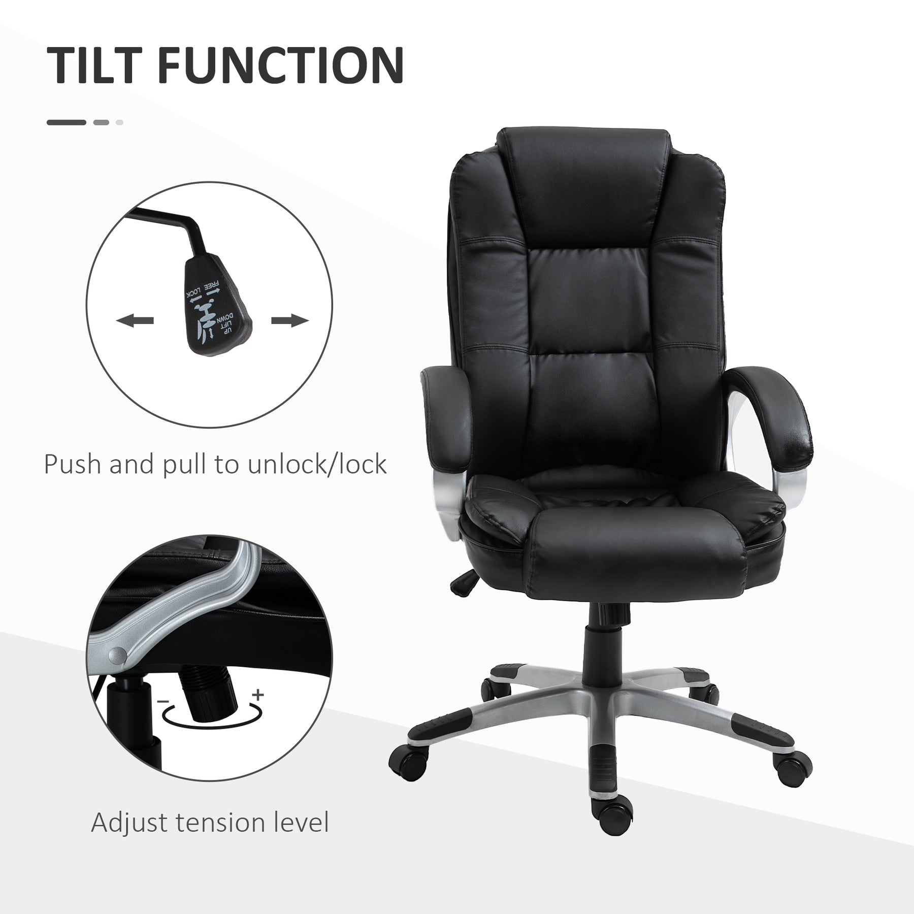 Take a seat in this Vinsetto high back desk chair and see how much more productive you can be. It is designed to allow you to move around your office quickly, and thickened sponge has been added for added comfort. The height can be easily adjusted to fit your sitting position. It can support up to 264 pounds, and the smooth-rolling casters make moving the executive office chair a breeze. With this PU leather office chair, you can focus entirely on your work while remaining comfortable.