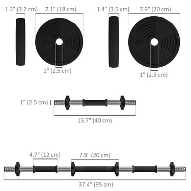 - • Dumbbell Bar: Φ1" x 17.7" L (Φ2.5 x 45L cm)