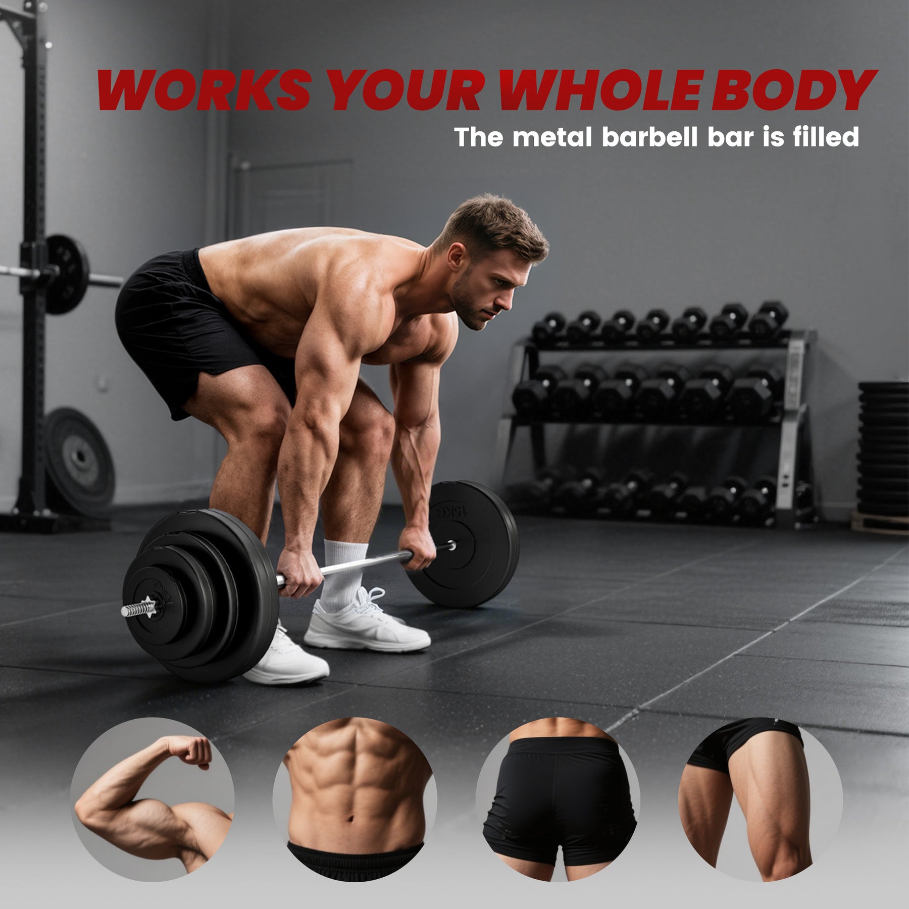- • Includes 2 x 33 lbs, 2 x 22 lbs, 2 x 11 lbs, 2 x 3 lbs barbells
