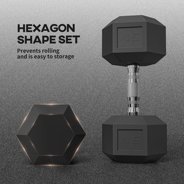 Soozier 2 x 45lbs Rubber Hex Dumbbells Weight Dumbbell Hand Weight Barbell for Body Fitness Training for Home Office Gym, Black