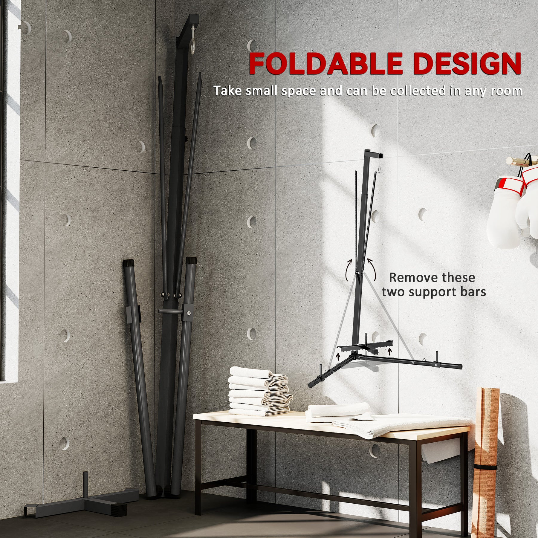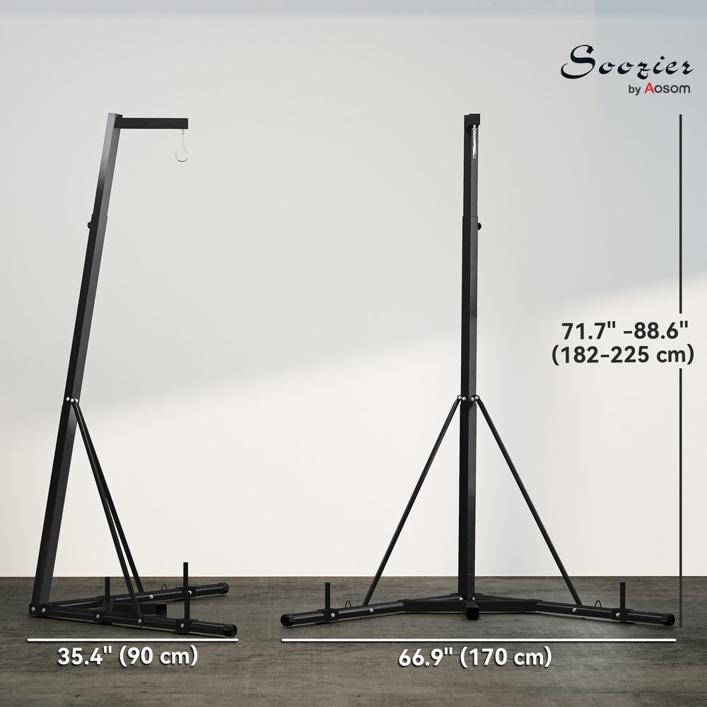 Introducing the Soozier Punch Bag Stand - the ultimate boxing companion. Built with a sturdy steel frame and a durable powder coating, it can hold bags weighing up to 132 lbs (60 kg). Its foldable design and ten height adjustments provide unmatched convenience and efficiency. Enhance your boxing skills and unleash your full potential with the Soozier Punch Bag Stand. Get yours today.