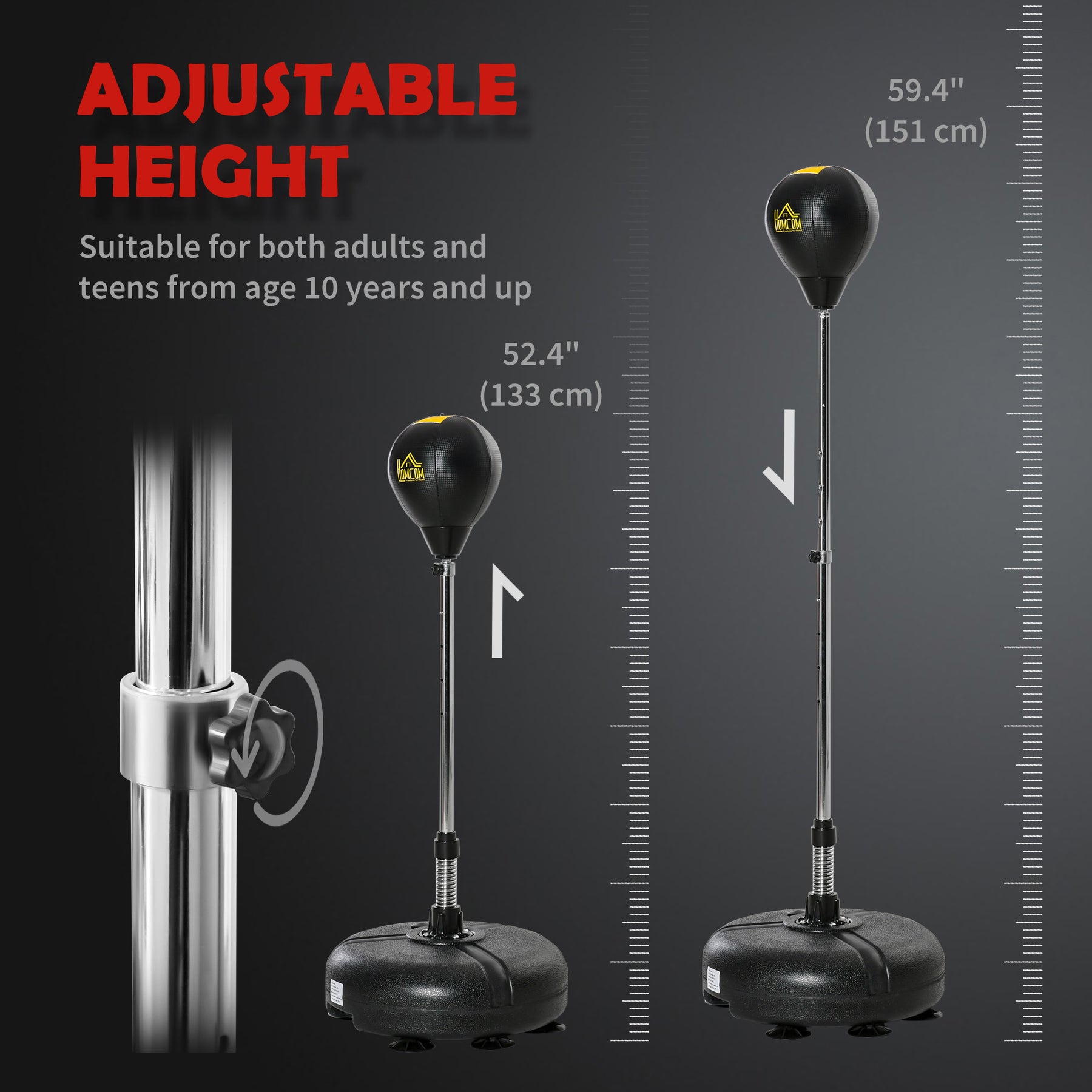 Get into the fighting spirit with this Soozier free standing punching bag. Boxing helps release stress, improve hand-eye coordination, and keep fit. The set includes a punch bag, boxing kit, and inflating pump. The adjustable pole (52.4"/133 cm -59.4"/151 cm) suits different heights and attaches to a fillable base for stability. The spring base allows it to flex and return for a complete workout.